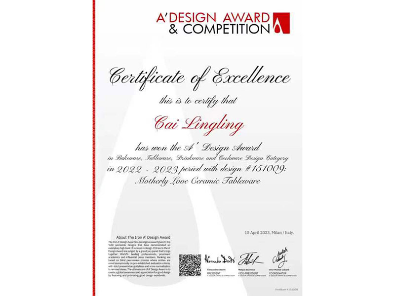 2023年意大利A设计奖,蔡玲玲母子情陶瓷餐具